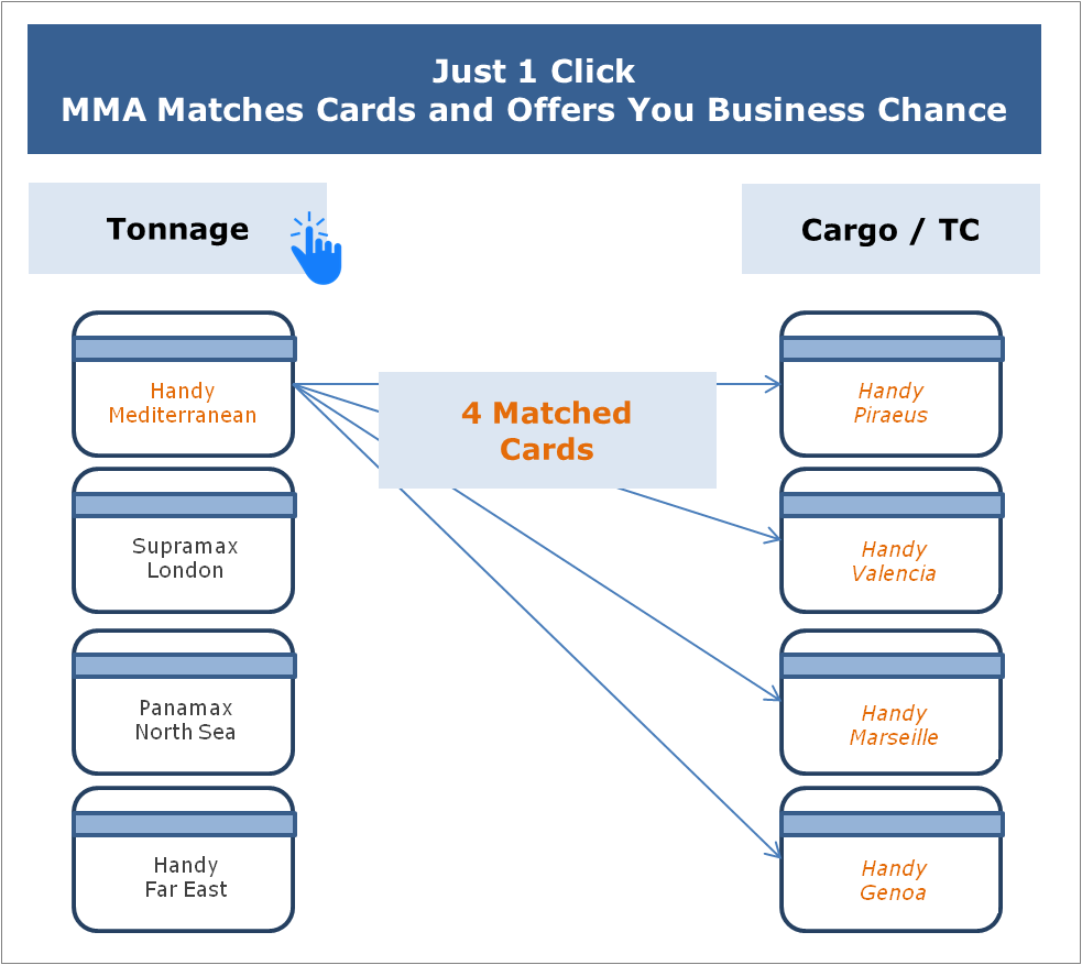 Just double click an offer card. It will then show you with matched tonnage and cargo cards for better business opportunities.