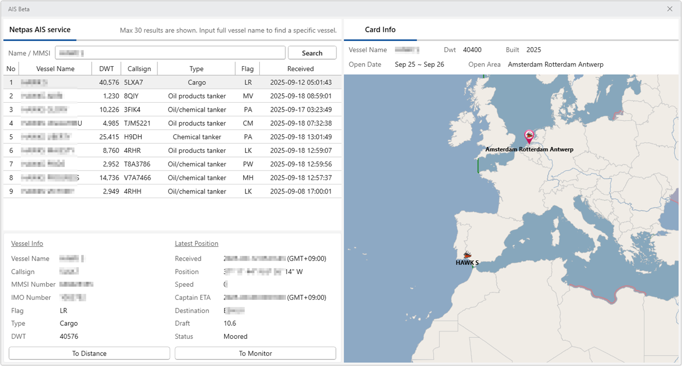 You can employ real-time Satellite and Terrestrial AIS information into your Chartering business.